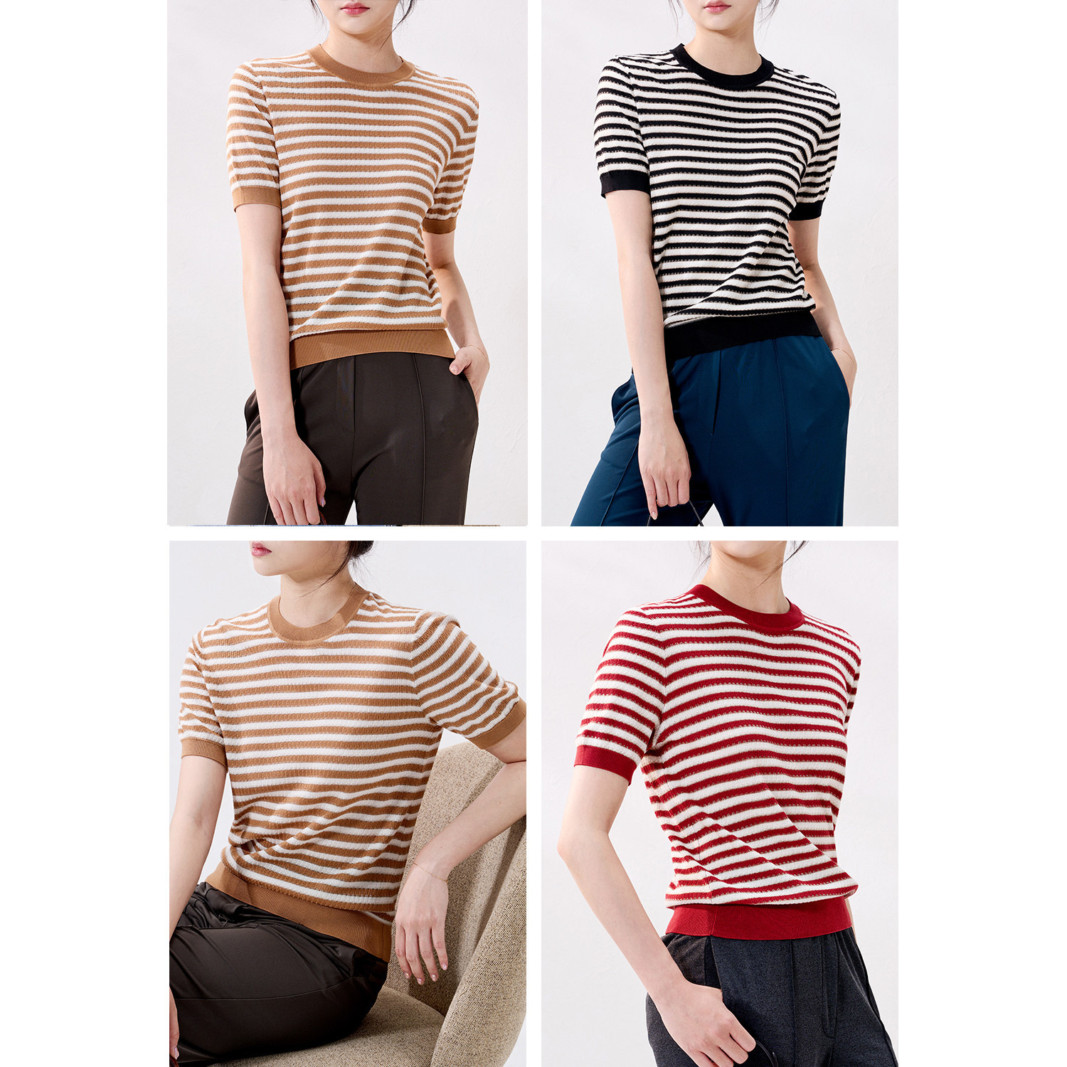 WZT06196 茉莉雅集 零负担优雅可机洗全真丝18针细条纹针织套衫