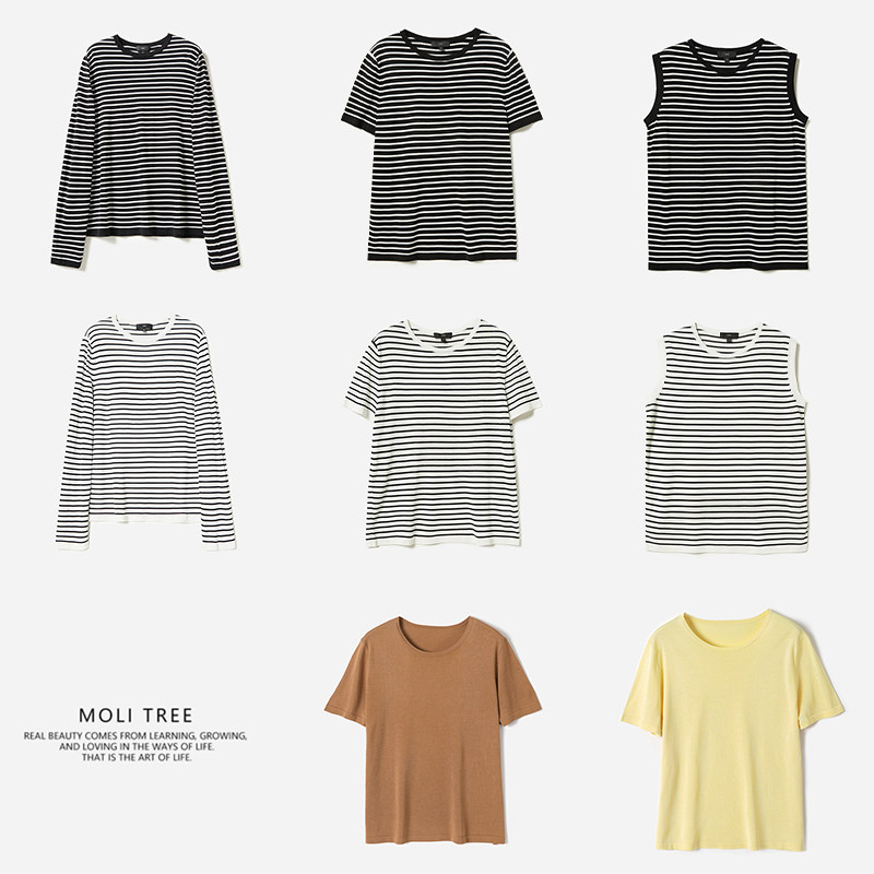 *WZT05337 茉莉雅集零负担优雅可机洗全真丝18针海魂条纹针织套衫