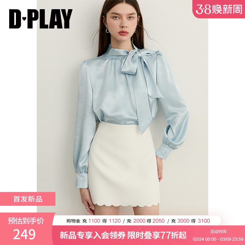 DPLAY蓝色衬衫女提花蝴蝶结2026年春季新款系带法式时尚上衣