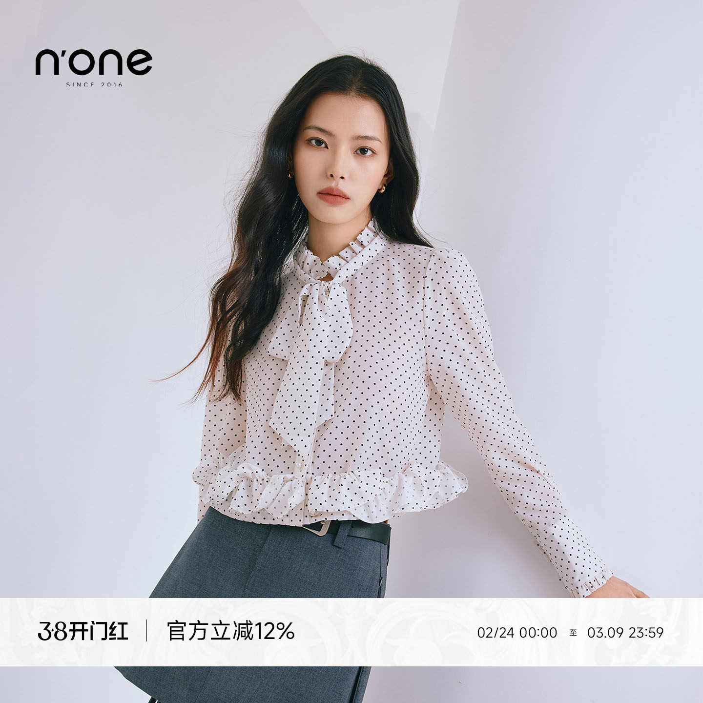 none 短款衬衫上衣女2025秋新款蝴蝶结系带领高级感轻奢减龄洋气