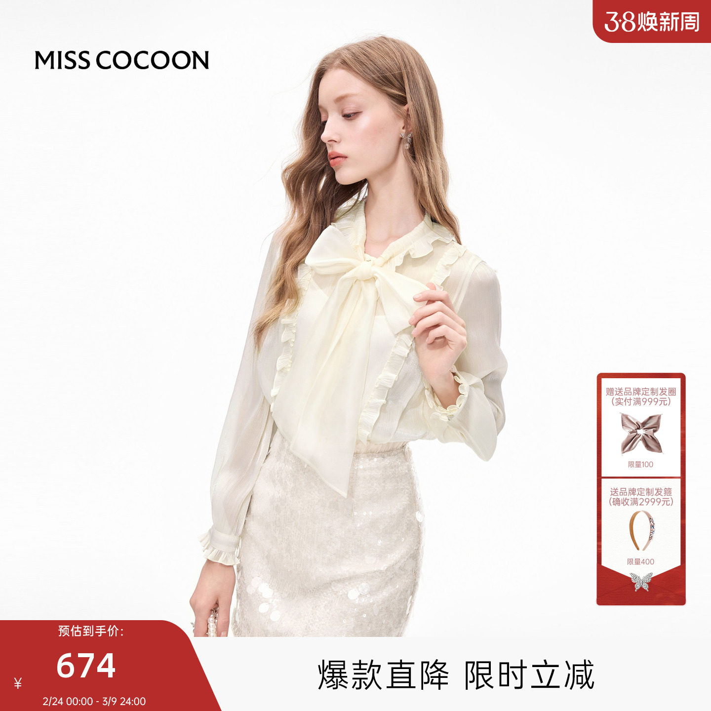 MISSCOCOON可可尼白色衬衫女2025秋季新款宫廷风蝴蝶结系带上衣