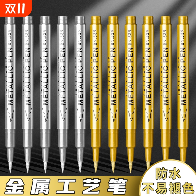 金属工艺笔金属色金属笔金色笔油漆笔签到签名笔签字金笔银色贺卡diy软头硬头绘画涂鸦笔补漆笔勾线笔防水