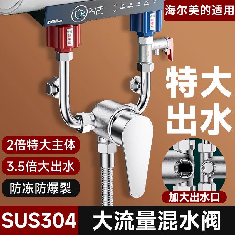 适用美的海尔电热水器大流量混水阀304不锈钢冷热水龙头花洒u型阀
