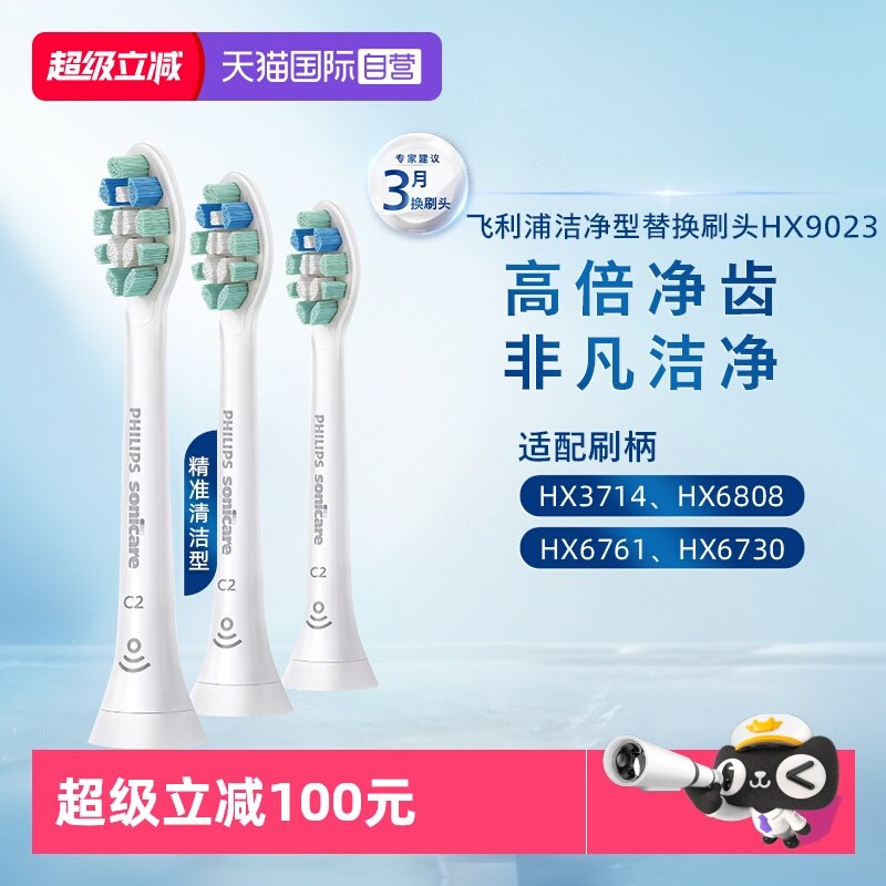 【自营】飞利浦电动牙刷头HX9023适配HX6730原装替换刷头HX9033