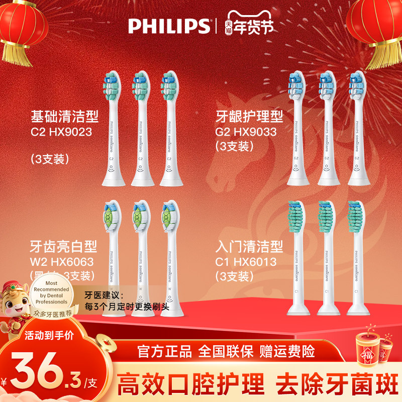 飞利浦电动牙刷替换刷头原装HX6063/9023/9033适配HX6730/HX3226