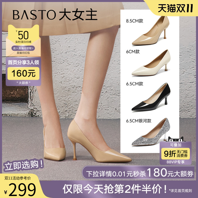 【大女主】百思图25秋新款裸色高跟鞋不累脚尖头女浅口单鞋婚鞋