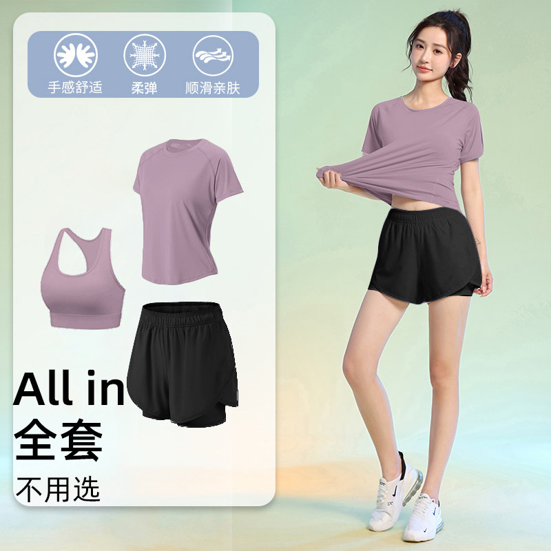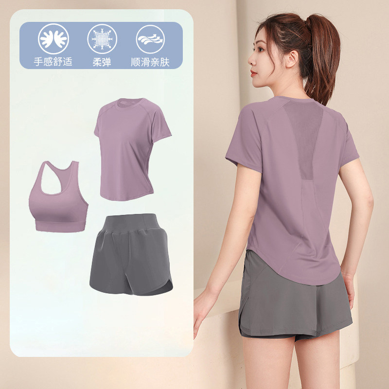 2026款夏季薄款瑜伽套装女短袖宽松显瘦速干健身服三件套运动套装