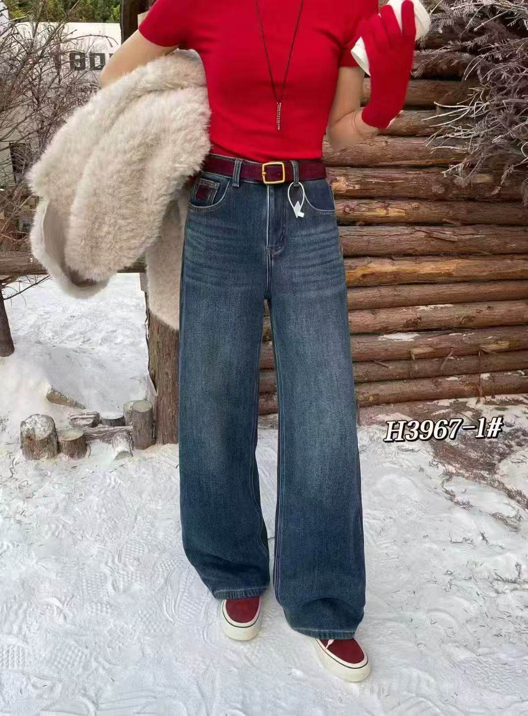 欧货正品2025冬季新款女士加绒牛仔裤高腰显瘦百搭减龄直筒阔腿粗
