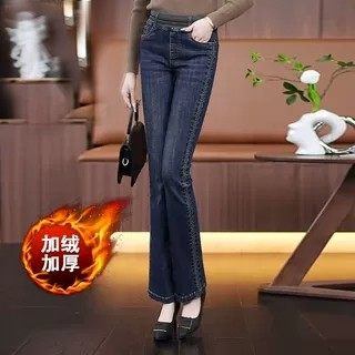 高腰微喇牛仔裤女2025秋冬季新款女士加绒修身显瘦马蹄裤喇叭裤子