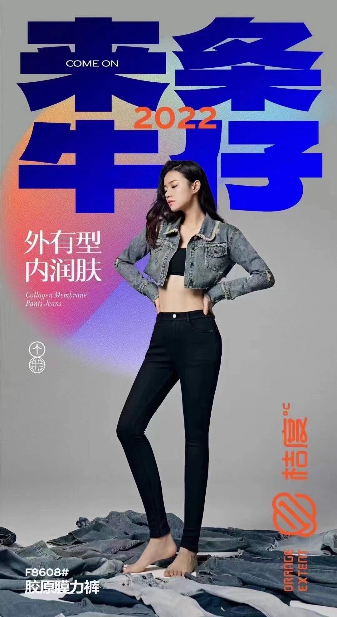 桔度胶原魔力裤女士加绒牛仔裤高腰小脚裤打底外穿保暖铅笔裤8608