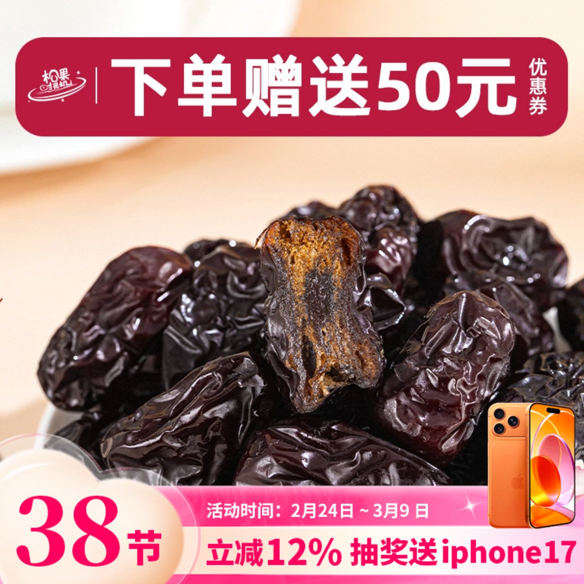 无核红枣官方旗舰店正品特级红枣干即食新疆特产去核大红枣夹核桃