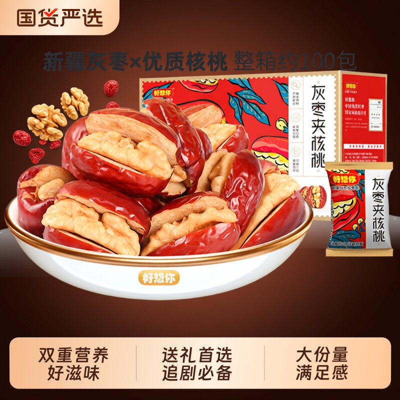 好想你红枣夹核桃新疆灰枣去皮去核即食大枣无核健康解馋小零食品