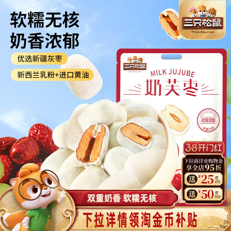 【三只松鼠_奶芙枣400g】免洗红枣零食新疆枣子巴旦木夹心去核枣