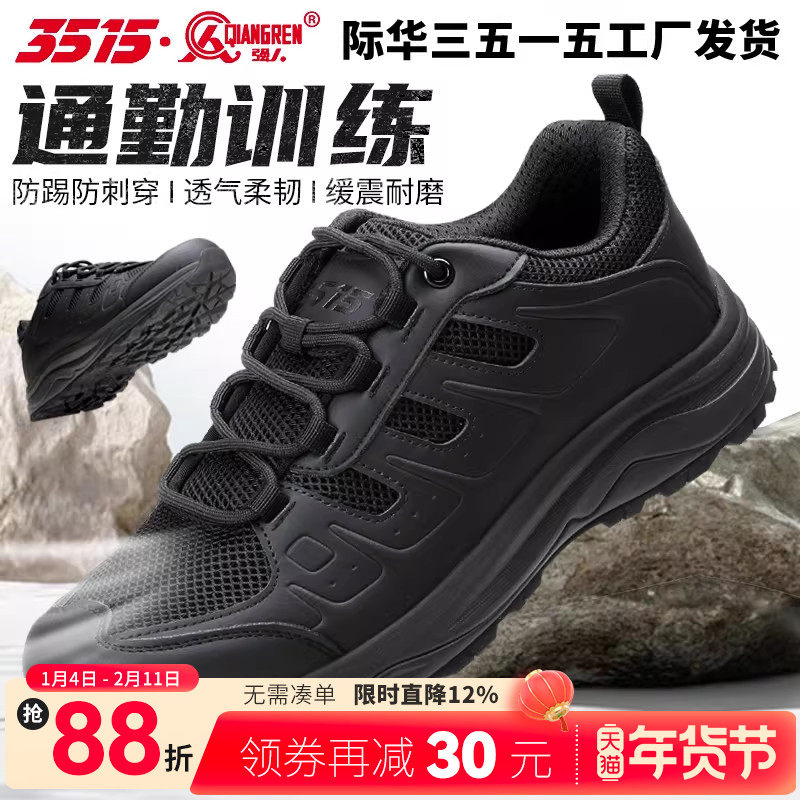 际华3515强人夏季训练鞋男透气户外登山鞋越野运动跑鞋耐磨黑色鞋