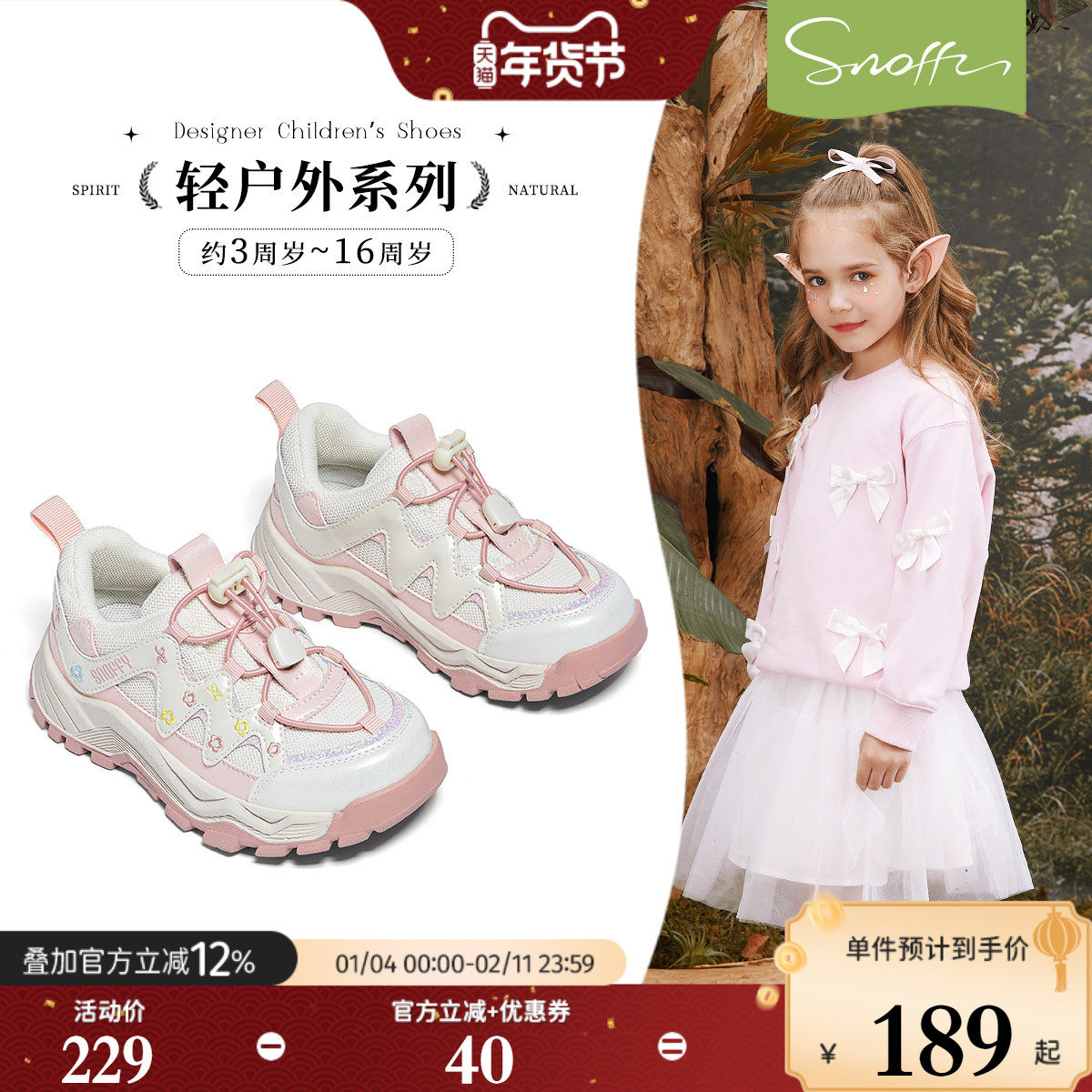 Jeep儿童鞋男童运动鞋春季2025官方网面透气户外登山鞋女童跑步鞋