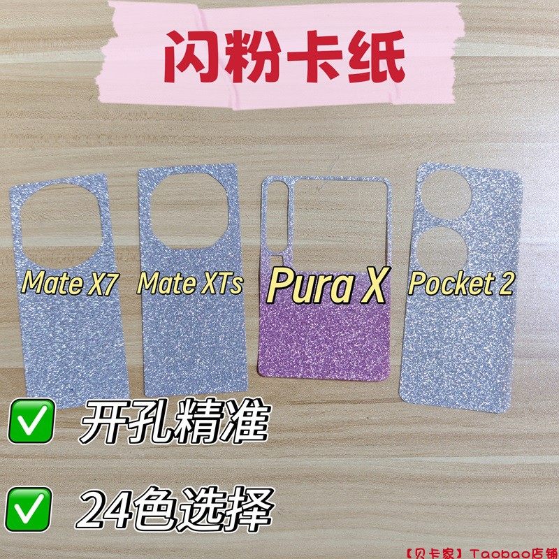 【贝卡家】华为MateX7闪粉卡纸XT适用PuraX典藏版手机壳背卡Diy咕手机背卡NovaFlipS渐变粉银色Pocket2/6/5/3