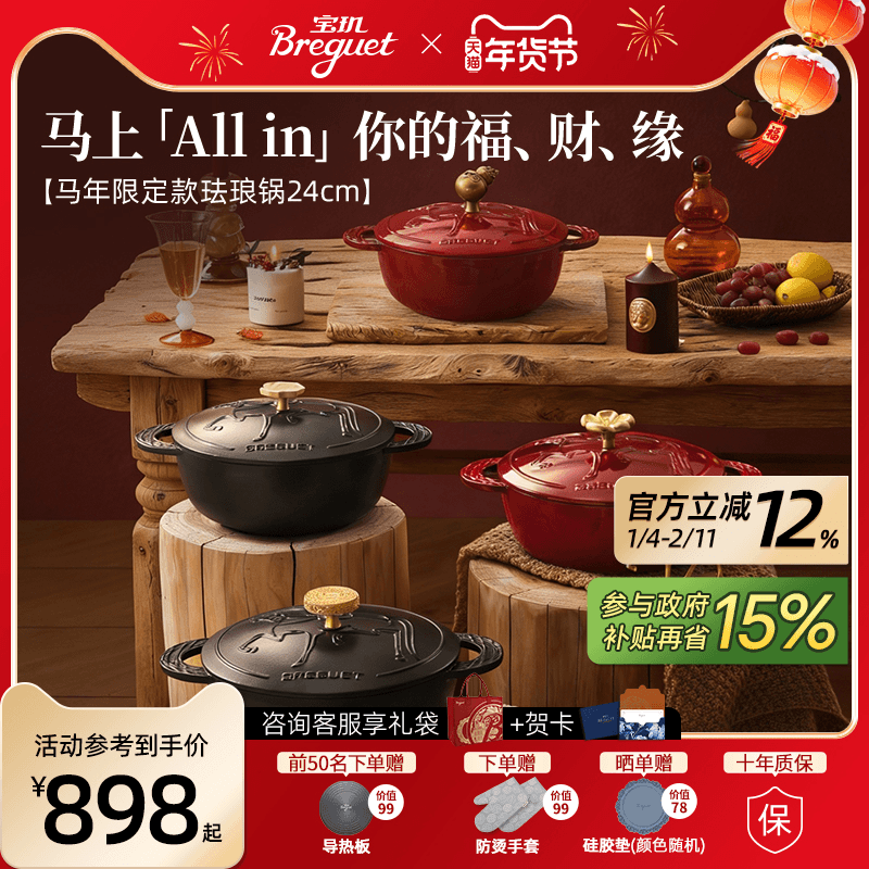 【新品】Breguet宝玑马年限定珐琅铸铁锅24cm家用焖炖锅新年送礼
