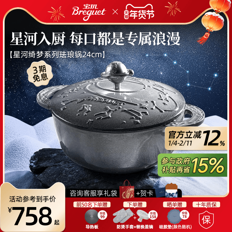 Breguet宝玑珐琅铸铁锅星座锅24cm家用无涂层焖炖煲汤锅乔迁礼物