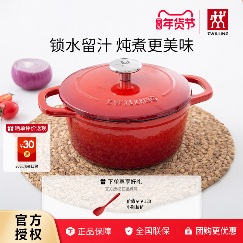 双立人珐琅铸铁锅汤锅红色24cm蒸锅砂锅小炖锅家用燃气煲汤20cm