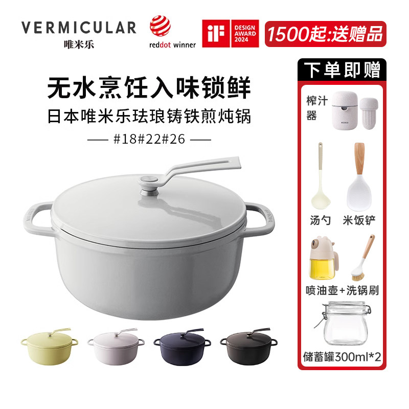 新品日本VERMICULAR唯米乐小v轻炖锅珐琅铸铁锅14cm18cm22cm26cm