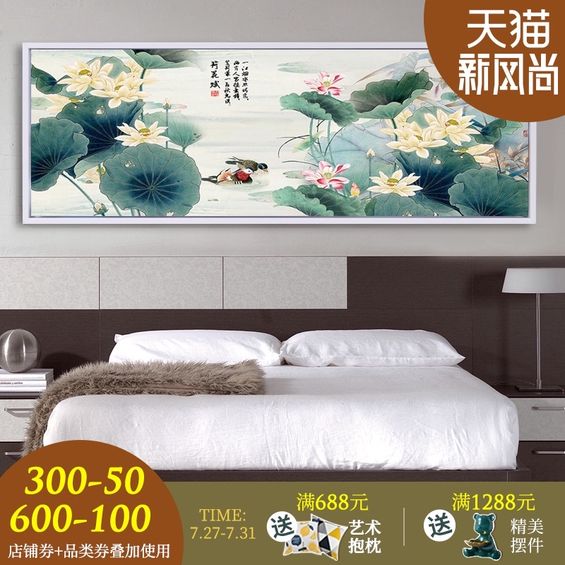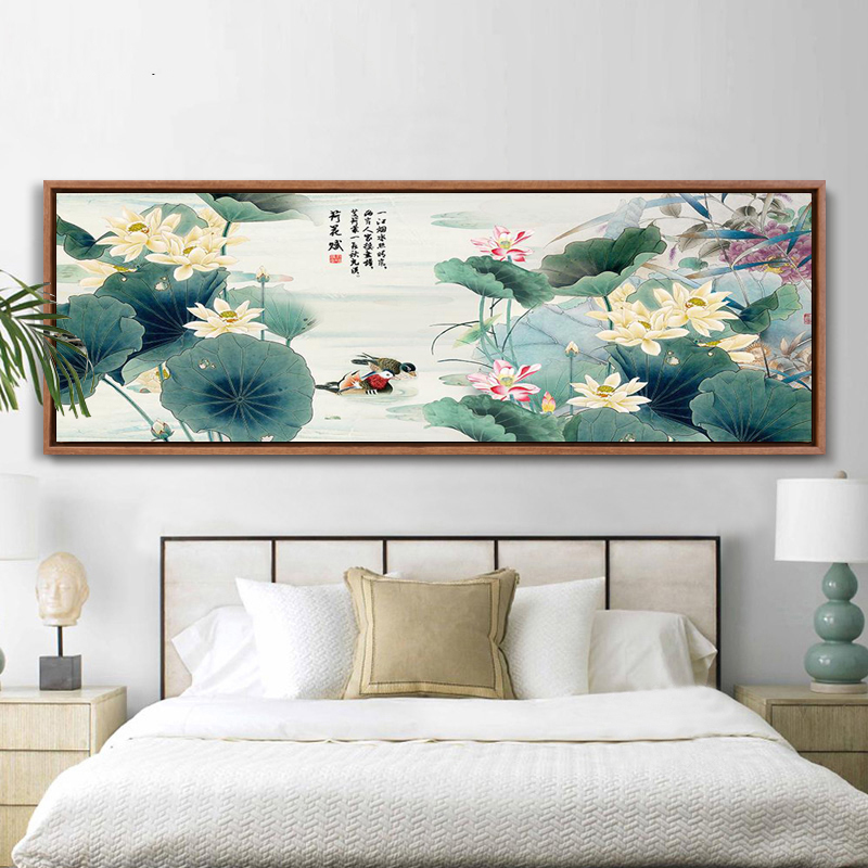 荷花背景墙水墨画卧室画鸳鸯戏水床头画装饰画客厅挂画温馨婚房画