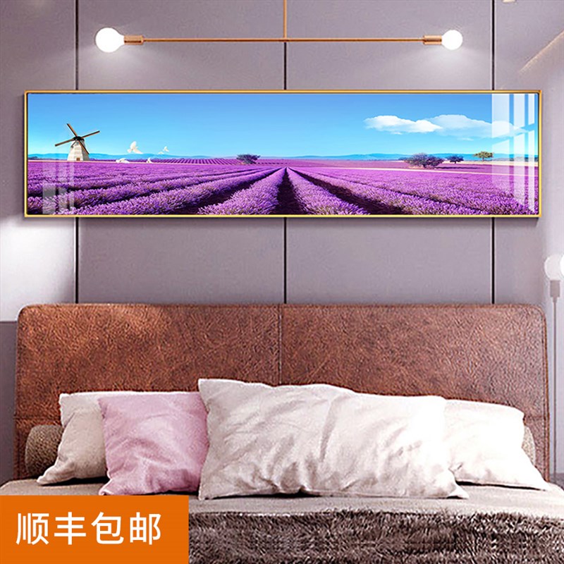 风景植物花草主卧室紫粉色浪漫薰衣草床头画装饰画水晶瓷挂画背景