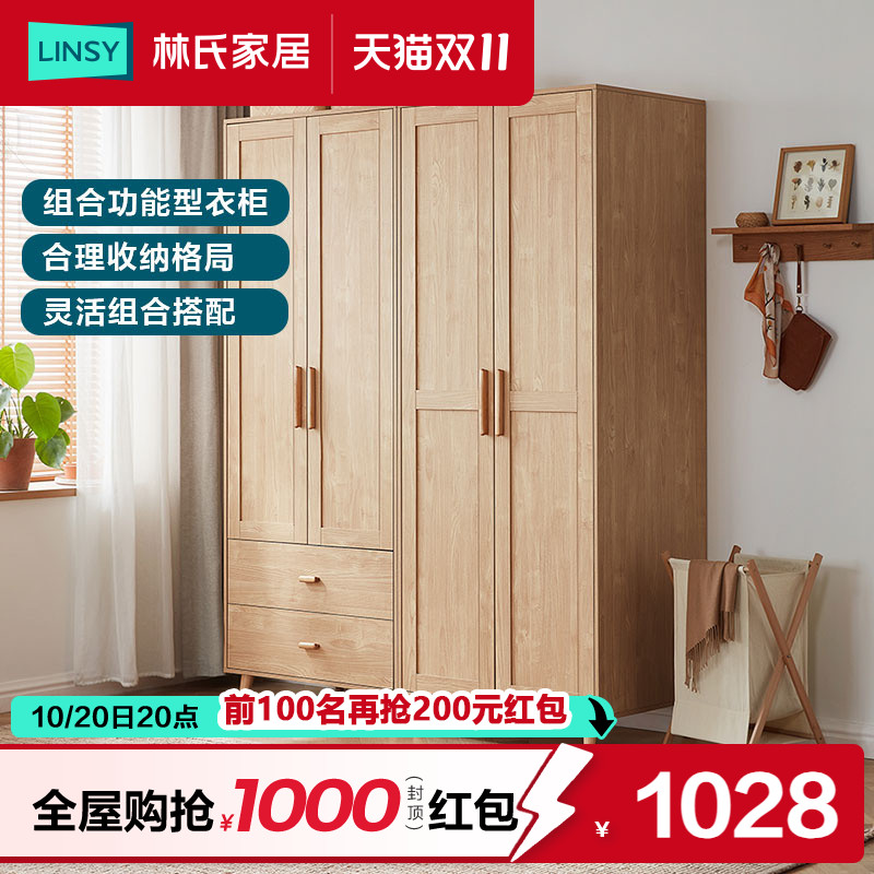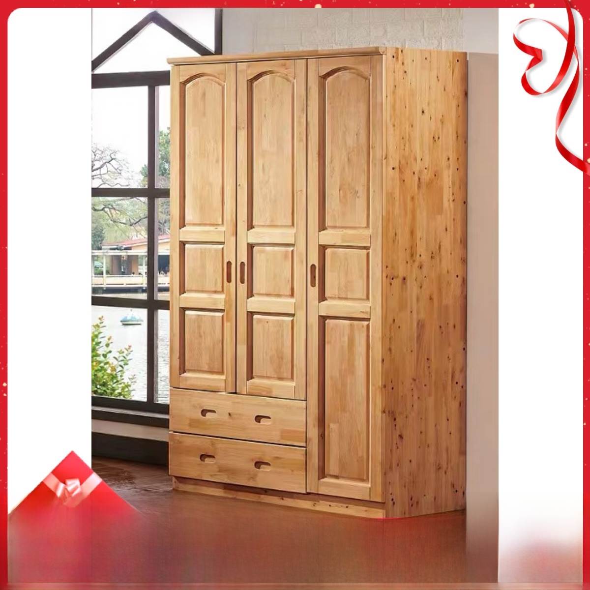 衣柜实木卧室松木衣橱组装木质四门租房大衣柜儿童两门三门储物柜