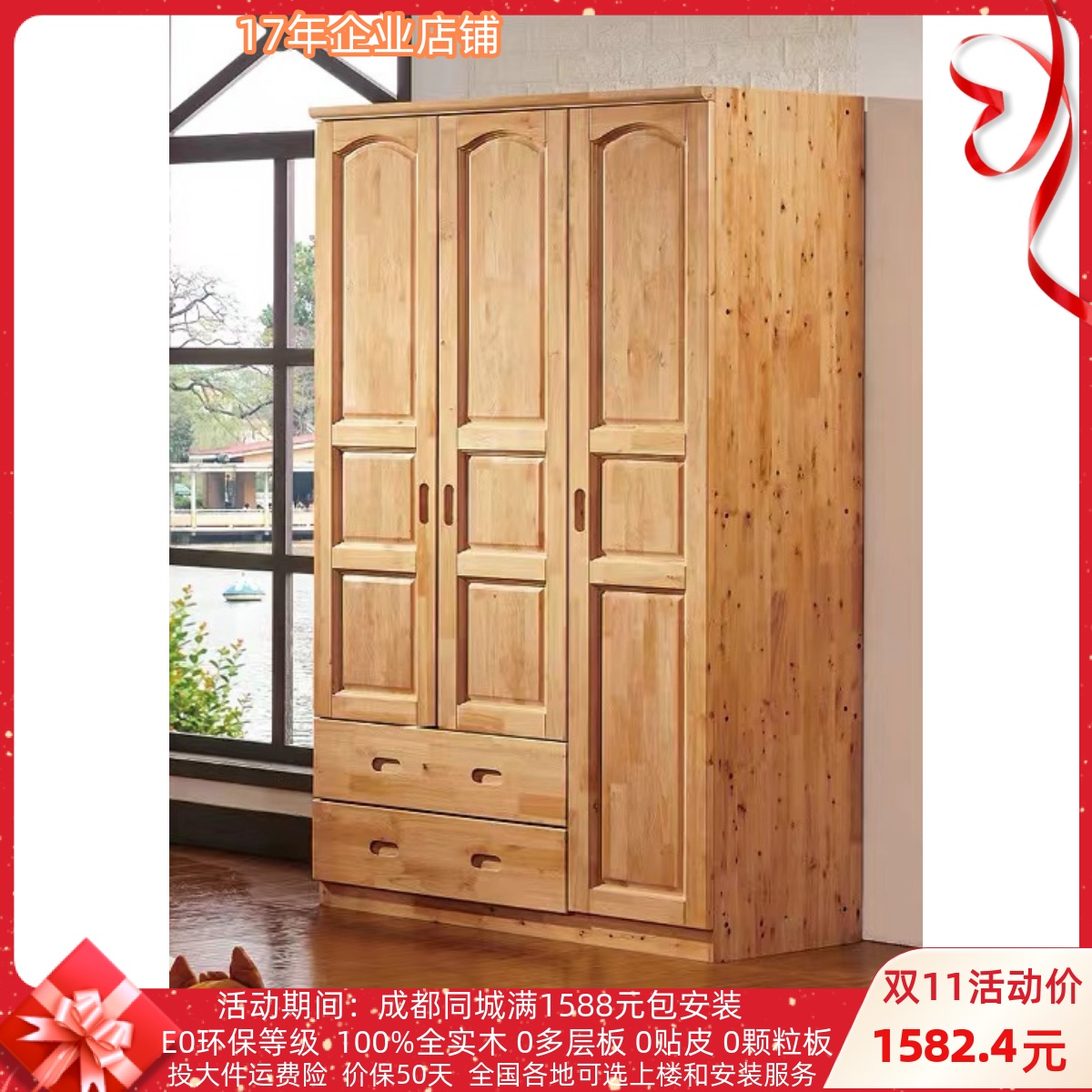 衣柜实木卧室全松木成人衣橱环保新中式大衣柜儿童两门三门储物柜