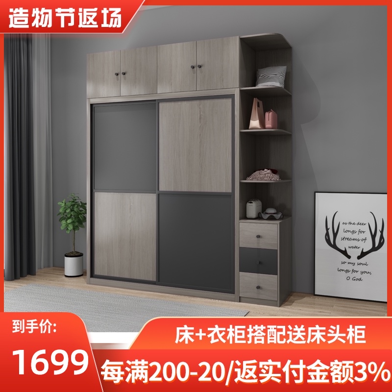 新北欧现代简约推拉门两门衣柜带妆台顶柜可移动大衣橱柜子储物柜