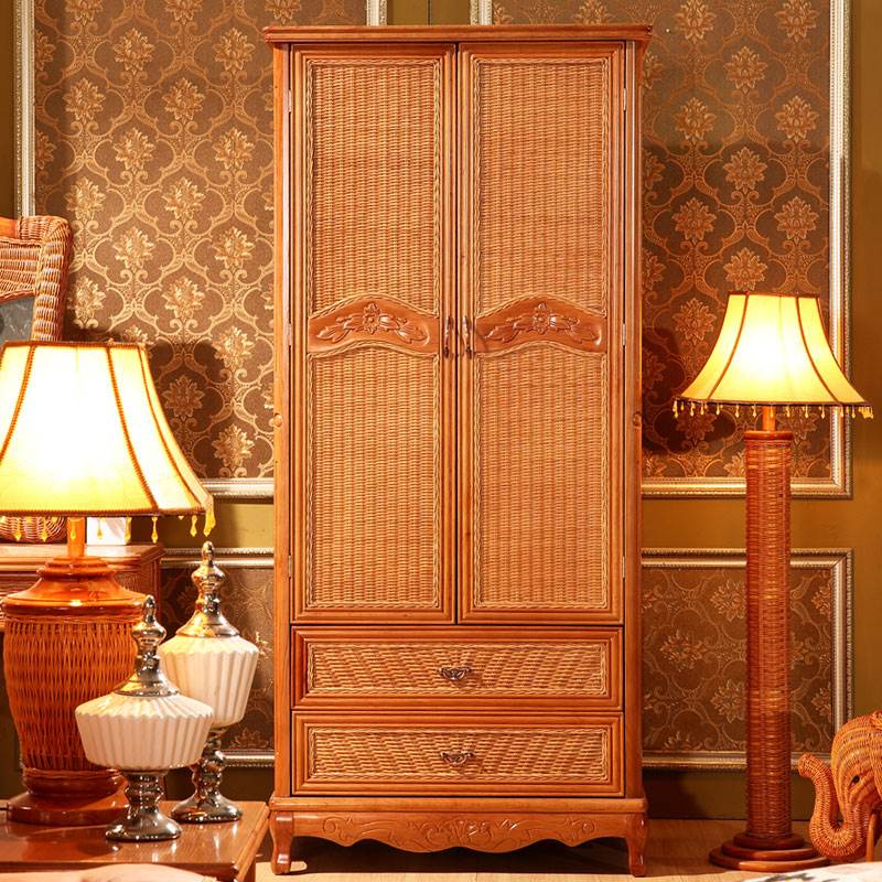 美式乡村实木两门衣柜 地中海卧室大空间储物衣柜 欧式储物衣橱