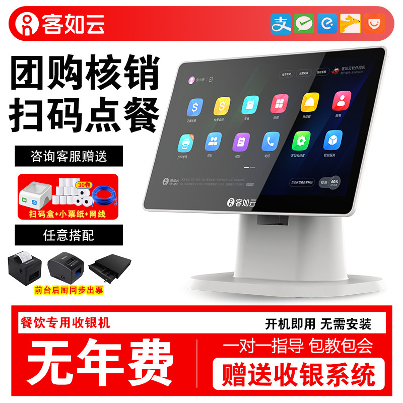 客如云收银机一体机商用餐饮收银系统扫码点餐点菜机饭店超市水果称重收银一体机收款机红云2C外卖管理火锅店
