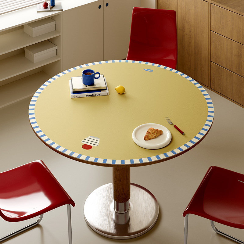 圆桌垫多巴胺彩色圆形餐桌保护垫子防水防油免洗桌布茶几布孟菲斯