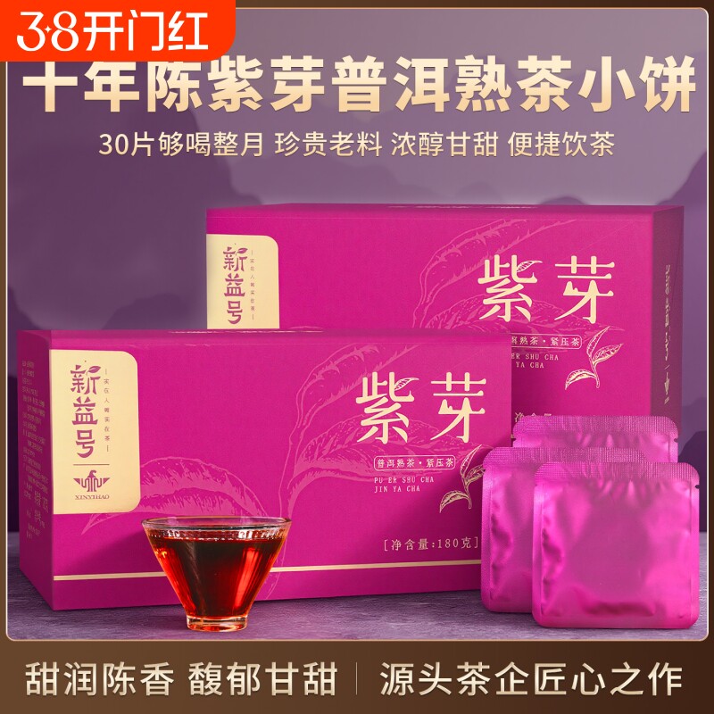 紫芽普洱茶熟茶糯米香十年以上云南古树熟普洱小茶饼礼盒口粮茶叶