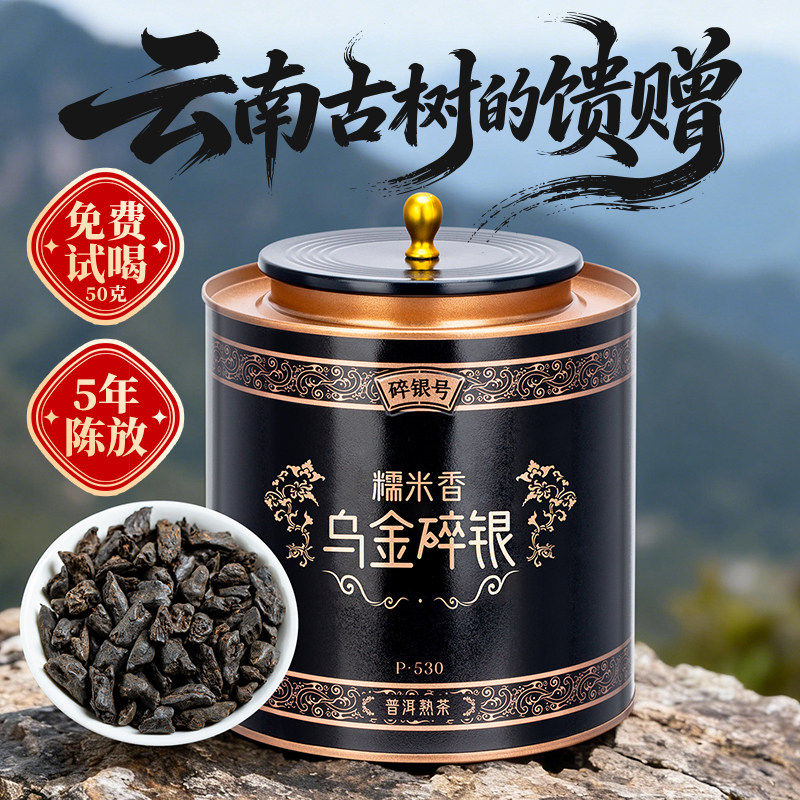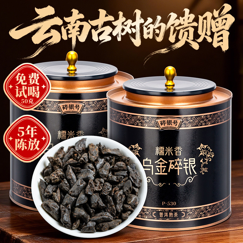 云南古树茶普洱碎银子茶化石熟普洱茶熟茶糯米香特级茶叶糯香黑茶