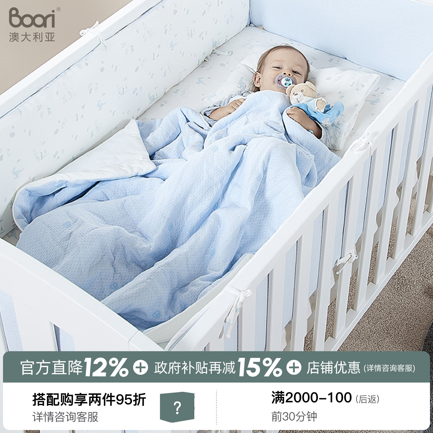 Boori爱达婴儿床围宝宝全棉床上用品8件套被子床笠可拆洗床品套件