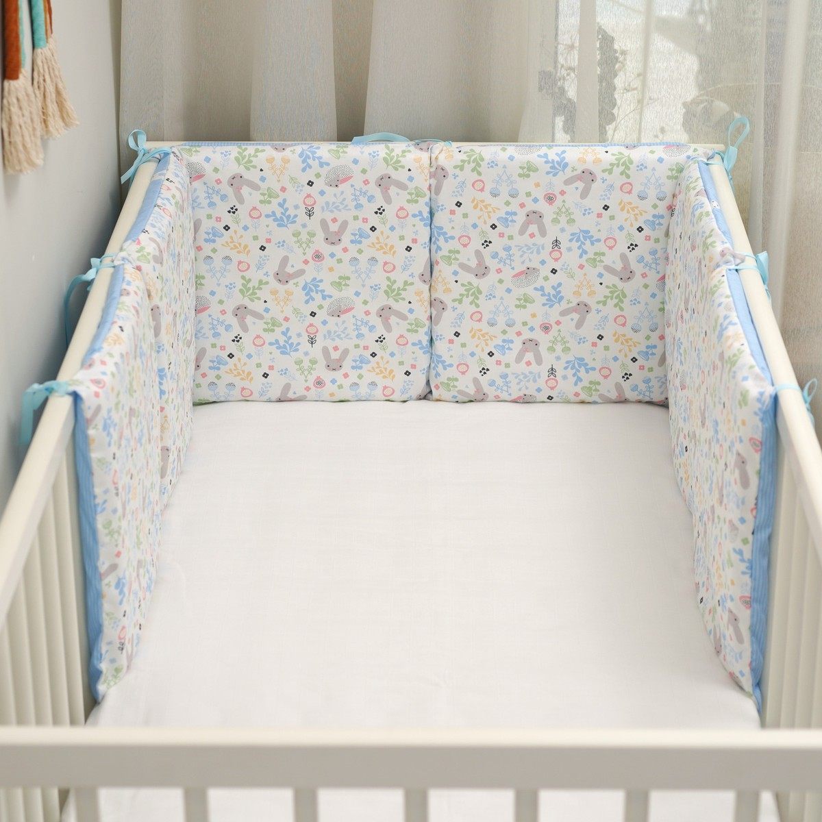 宝宝床围 婴儿床上用品套件卡通纯棉防撞护栏蓝兔子30*30*6可拆洗