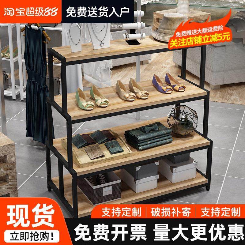 钢木货架中岛柜鞋店鞋架化妆品展示柜母婴店货架超市促销台收纳柜