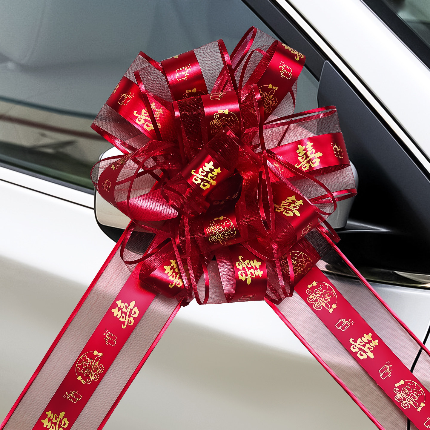 拉花彩带蝴蝶结婚车装饰礼物包装大号雪纱手拉花丝带接亲车队装饰