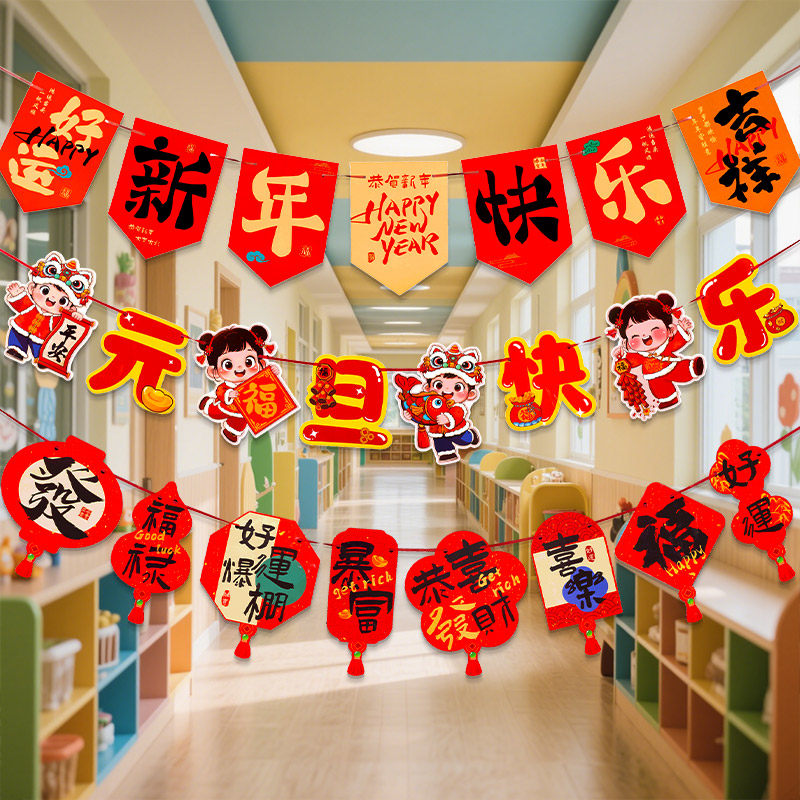 2026新年幼儿园班级教室装饰品拉旗活动元旦氛围布置拉花彩带环创