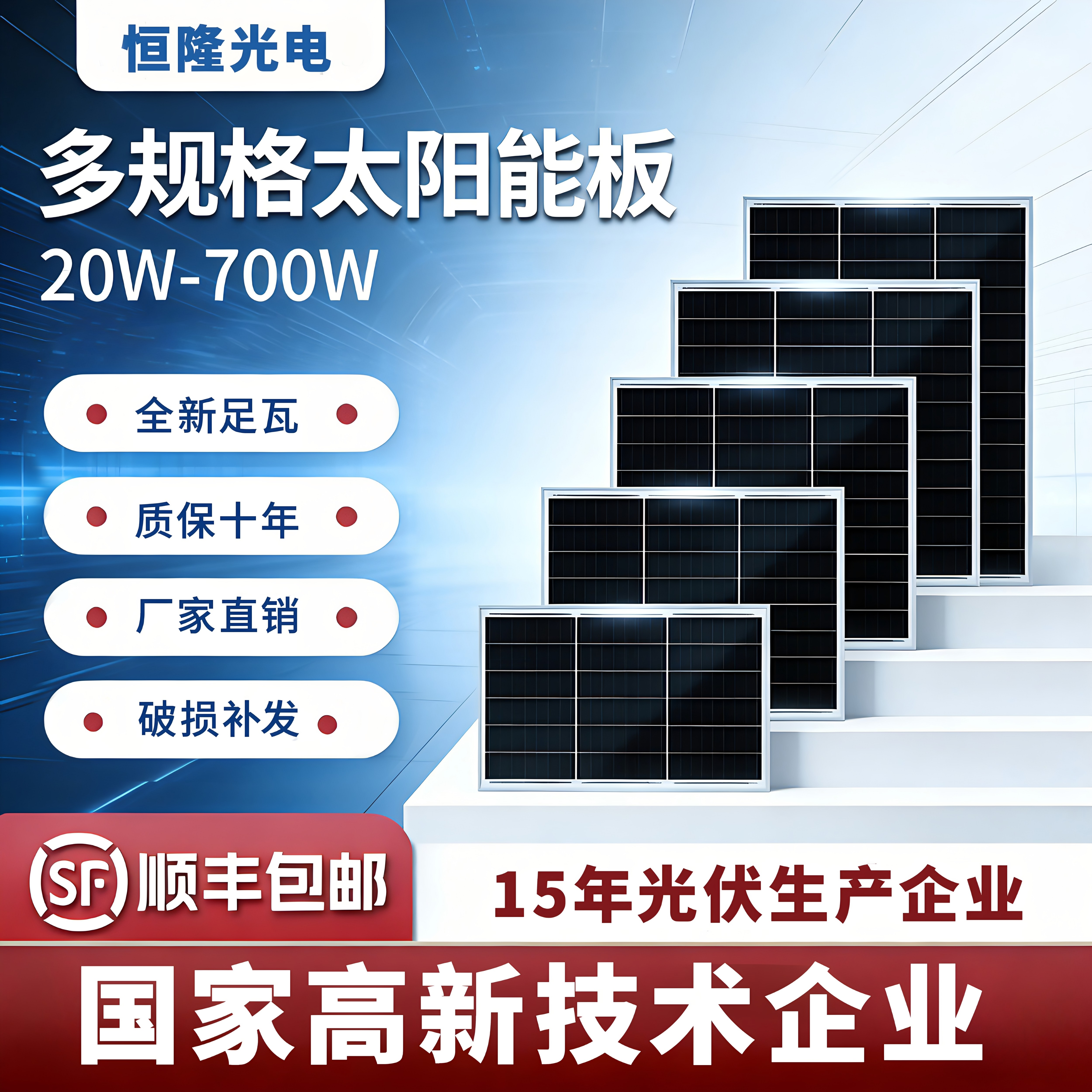 单晶600W太阳能发电板大功率24V伏家用系统充电板货车光伏电池板