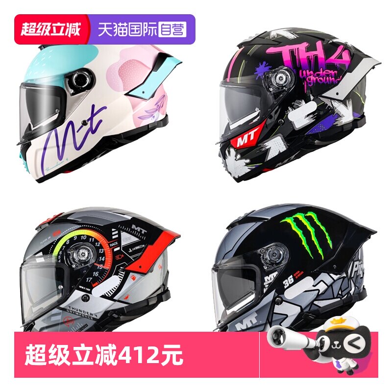 【自营】西班牙MT头盔雷神4摩托车双镜片全盔安全帽四季冬季头盔