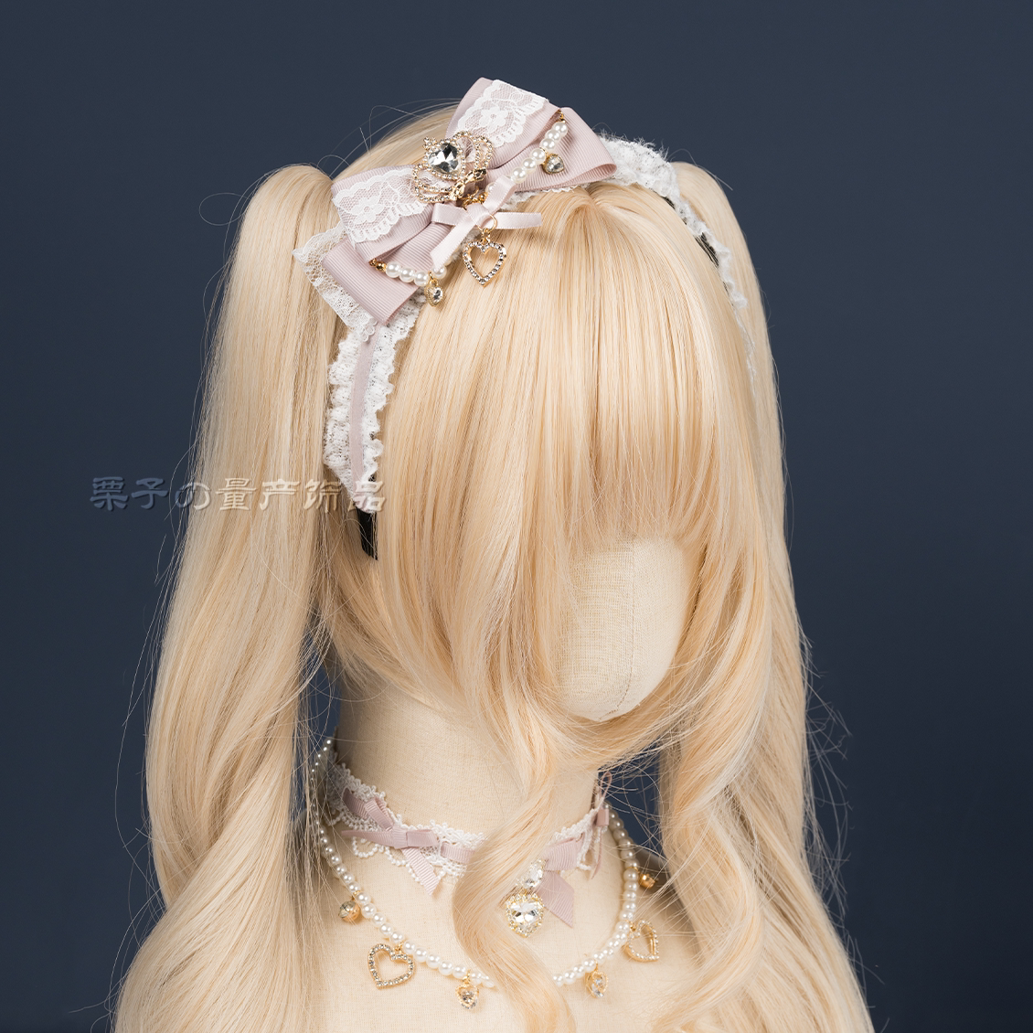 日系量产型侧面立体蝴蝶结发箍皇冠仿珍珠串头箍lolita毛茸茸头饰