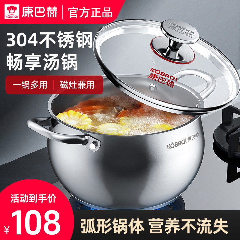 康巴赫304不锈钢大容量加厚汤锅厨房家用煮粥煲汤家用煮面炖锅