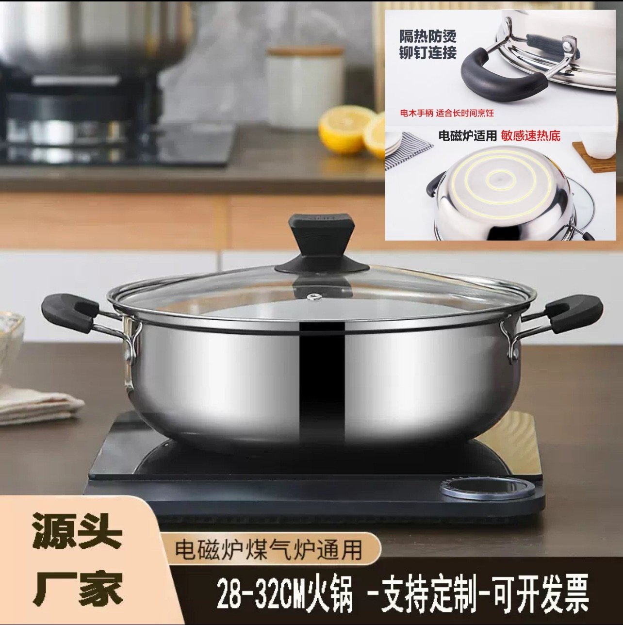 不锈钢火锅盆加厚清汤锅干锅鸳鸯锅火锅家用电磁炉专用火锅锅商用