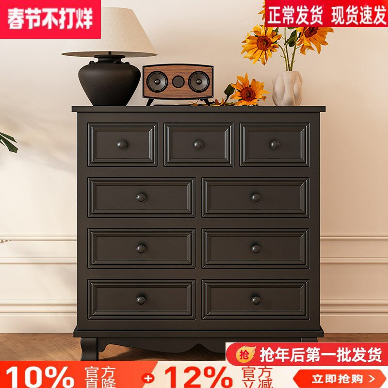 斗柜实木黑色美式收纳储物小柜子客厅卧室五斗柜置物柜家用窄边柜