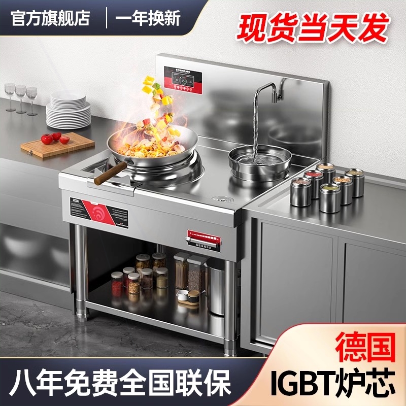 15kw大功率商用电磁炉双头猛火爆炒电炒锅厨房神器双炒一温灶
