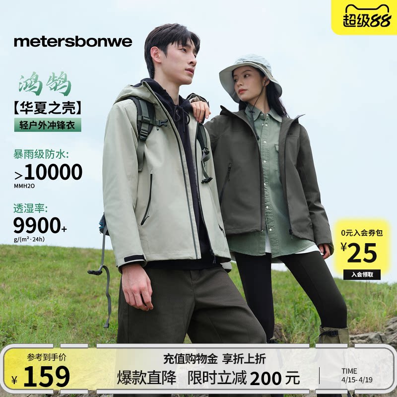 美特斯邦威男女同款冲锋衣休闲春季新款宽松户外外套运动防风防水