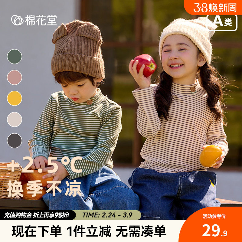 棉花堂儿童半高领打底衫百搭秋冬新款长袖条纹童装打底衣保暖上衣
