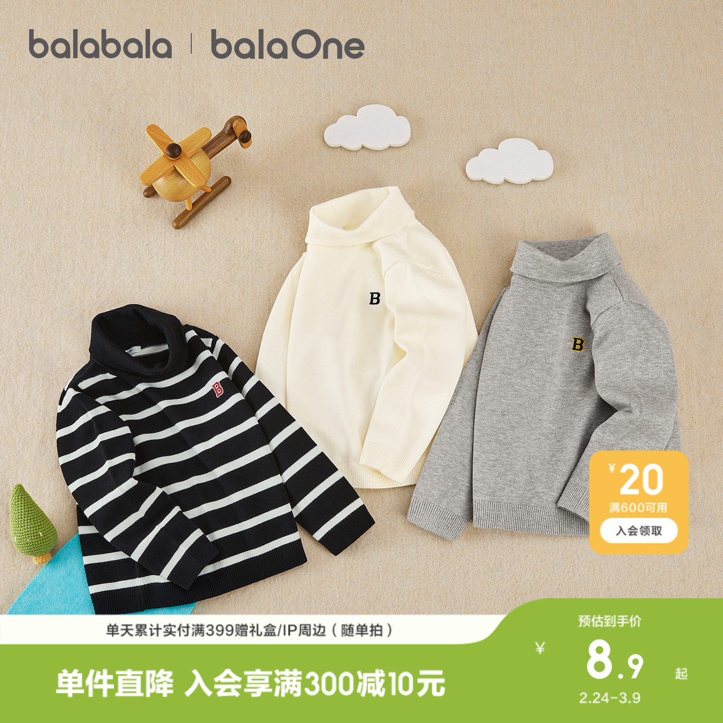 巴拉巴拉童装儿童毛衣男童女童2026新款套头针织衫冬中高领打底衫