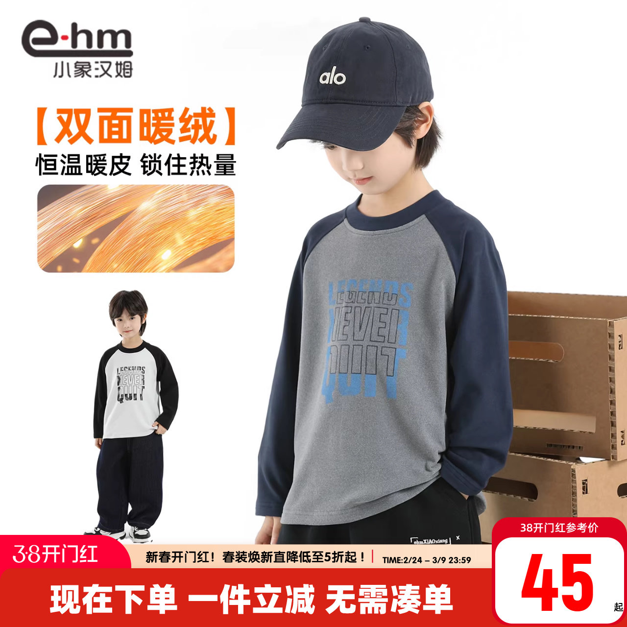 小象汉姆童装男童打底衫儿童假两件德绒半高领内搭2026冬新款潮